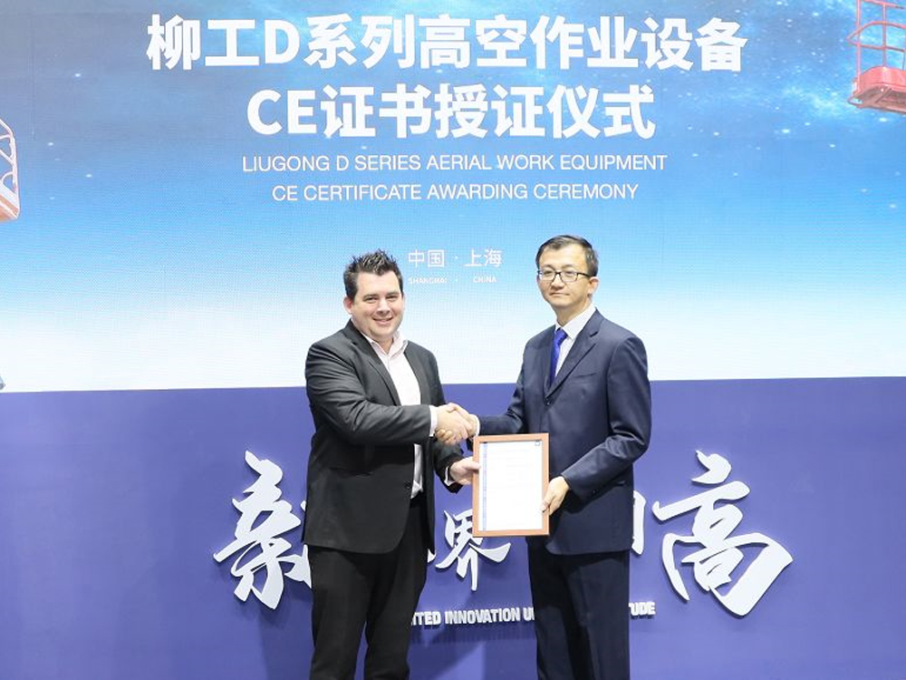 展会现场安徽柳工起重机有限公司营销公司总经理王鹏飞先生与四家公司分别签署了战略合作协议和共计人民币5000万元的授信协议。合作伙伴对柳工产品的认可是支持柳工前进的最大动力,也是柳工发展道路上的永恒目标。在D系列高空作业设备产品发布会上,TUV SUD 大中华区工业服务部总监Mr. Simon Lemin向安徽柳工高空作业设备分公司总经理刘国强颁发CE认证,标示着安徽柳工高空作业设备获得了欧盟公告机构的认可,为柳工高空作业设备进入欧洲市场迈出坚实的一步,柳工也将借此更好地服务全球高空客户。