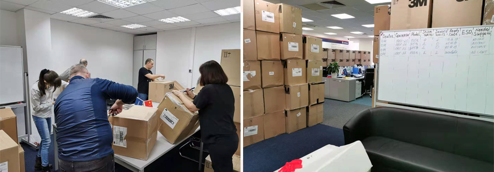 此次,柳工调配全球资源,与海外合作伙伴及渠道多位同仁展开合作,在多个国家和地区紧急采购疫情防控急需的防疫物资支援前线。柳工俄罗斯子公司积极响应公司高层要求,在一天半内采购10万余只医疗口罩,加班加点打包发运,以最快的速度将口罩发回国内。